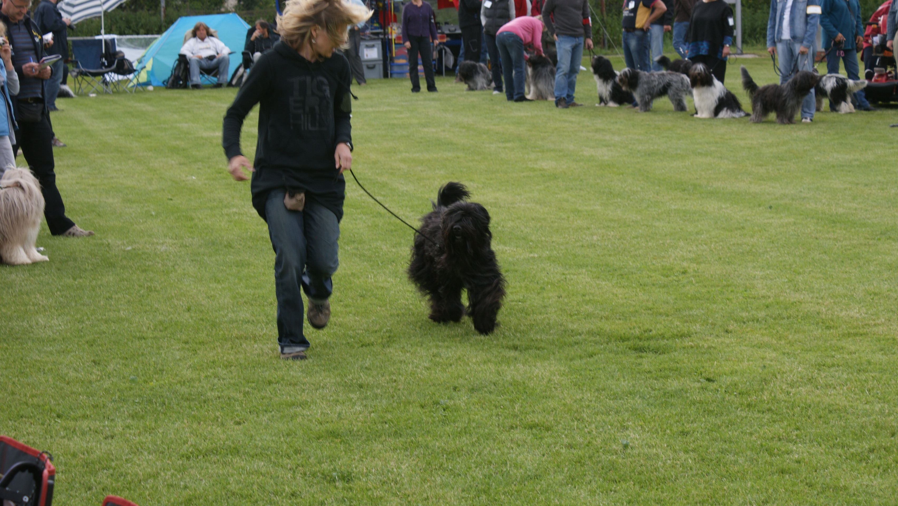 "Typvoller Rüde mit korrektem anatonischem Aufbau. Kräftiger Kopf. Feste Gebäudelinie. Derbes Haar. Sehr gute Winkelungen und freier, in der Höhe geringfügiger, Bewegungsablauf. Freundliches Verhalten."