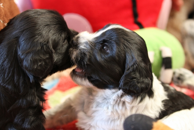28.02.2015 Wir waren zum Welpenkuscheln bei Christine und haben uns natürlich unsterblich in das bezaubernde Glückskleeblatt verliebt!!! Die Welpen sind jetzt vier Wochen alt, schon munter unterwegs und einfach nur zuckersüß!!! Ähnlichkeiten mit Charlie sind nicht abzustreiten;) Wer sich dafür interessiert, wie Charlie als Welpe ausgesehen hat, kann sich gerne noch einmal die Fotos von Charlies ersten Wochen ansehen.