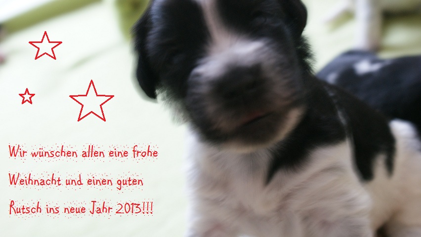 24.12.2012 Stellvertretend für alle 12 Racker hier im Haus und natürlich uns wünscht BEE eine frohe Weihnacht. Als kleines Weihnachtsbonbon noch eine Aktualisierung der Bilder der dritten Woche.