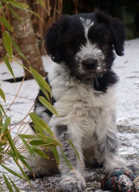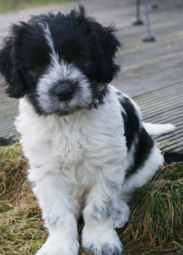 10.01.2013: Die Erkältung ist nahezu überwunden. Alle Welpen sind wieder fit!. Wir haben inzwischen jeden Tag einen kleinen Ausflug nach draußen gemacht, heute allerdings war die Terrasse das erste Mal trocken! Um dem inzwischen immer ausufernden Entdeckertrieb zu entsprechen, wurde auch der restliche Wohn- und Küchenbereich welpensicher gestaltet und so wuseln immer häufiger kleine aufgeregte Vierbeiner um unsere Füße, die ziemlich zielsicher die letzten Schwachpunkte unserer Sicherung entdecken.